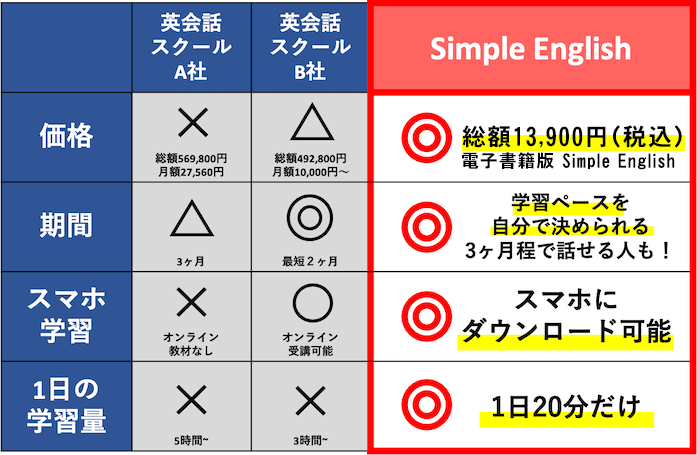 「Simple English」は英会話スクール1ヶ月分の「月額費」でほとんどすべてが学べてしまう。