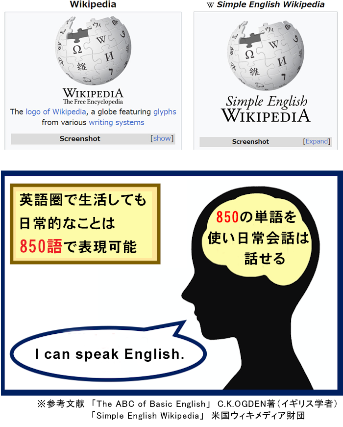 イギリス学者のオグデン(C.K.Ogden)が、たった850語で日常の会話の大半はできてしまうという発表を「The ABC of Basic